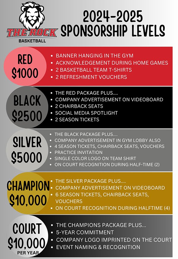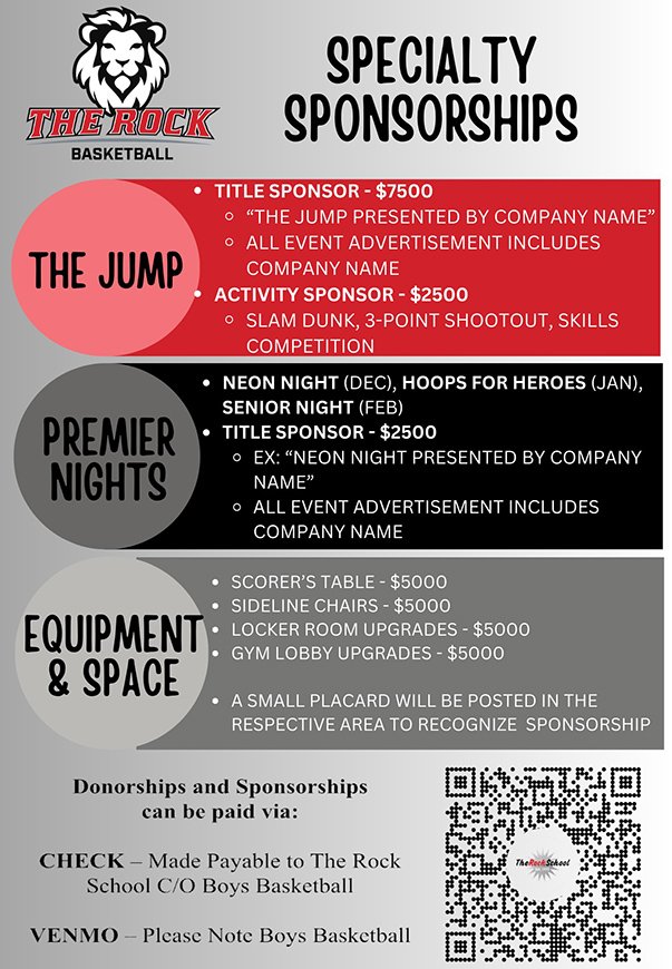 To kick off its drive toward another great year, The Rock hoops program is excited to announce new sponsorship opportunities for the 2024-25 season.